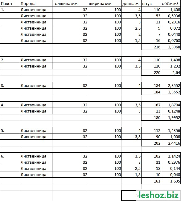 Лиственница обрезная, транспортной влажности, 18%, сорт 2-3